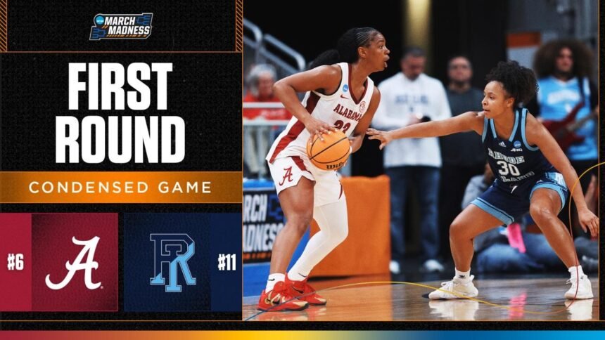 Watch the highlights from No. 6 Alabama and No. 11 Rhode Island’s matchup in the first round of the 2026 women’s NCAA tournament.
