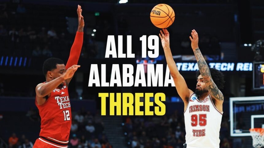 Watch all 19 of Alabama’s three-pointers from their second-round dominating win over Texas Tech in the 2026 NCAA men’s basketball tournament. The Crimson Tide netted the third-most threes all-time in a March Madness game.