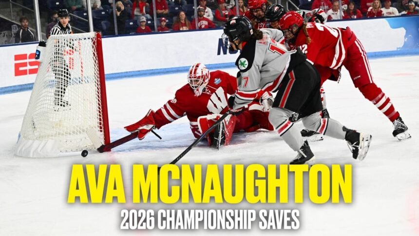Watch Olympic goalie and Wisconsin standout Ava McNaughton’s defensive highlights from the 2026 Women’s Frozen Four championship game.