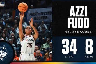 UConn’s Azzi Fudd drops 34 points with 8 three-pointers in second round win