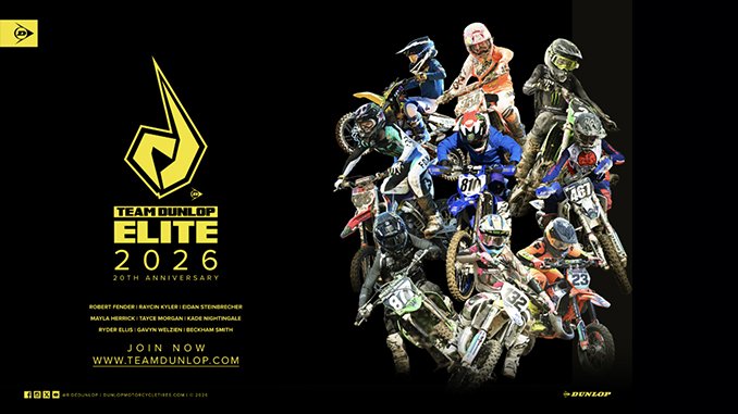 RANCHO CUCAMONGA, CA — January 8, 2026 – (Motor Sports NewsWire) – Dunlop Motorcycle Tires is proud to announce the 2026 Team Dunlop Elite motocross roster as the program celebrates its 20th anniversary, marking two decades of identifying, supporting, and developing the most promising amateur motocross athletes in the United States. Since its inception in 2007, Team Dunlop Elite has become a proven athlete development pipeline, producing a long list of riders who have advanced into professional racing careers, including Eli Tomac, Justin Barcia, Aaron Plessinger, Adam Cianciarulo, Chase Sexton, Austin Forkner, and Haiden Deegan.