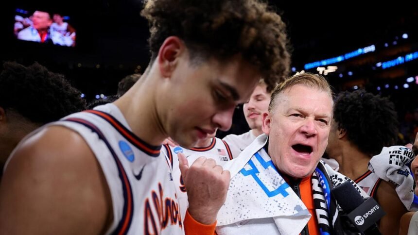 “We play in the best league in the country, so anything’s possible when it comes to winning a national championship. I never doubted — and I don’t want to sound arrogant — I’ve never doubted us getting to a Final Four would happen. But I also know how doggone hard it is to do it. For that, I just say thank you. I say thank you to everybody involved. And I’m going to get emotional, but I’ve been doing this 39 years, and you dream about this as a kid, and I dreamt about doing it at Illinois.”