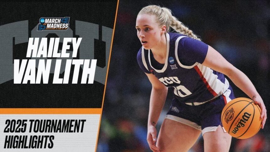 Hailey Van Lith was a leading factor in TCU’s run to the Elite Eight in the 2025 NCAA women’s basketball tournament. She is the first player to lead three separate teams to three Elite Eights. Watch her March Madness highlights here.