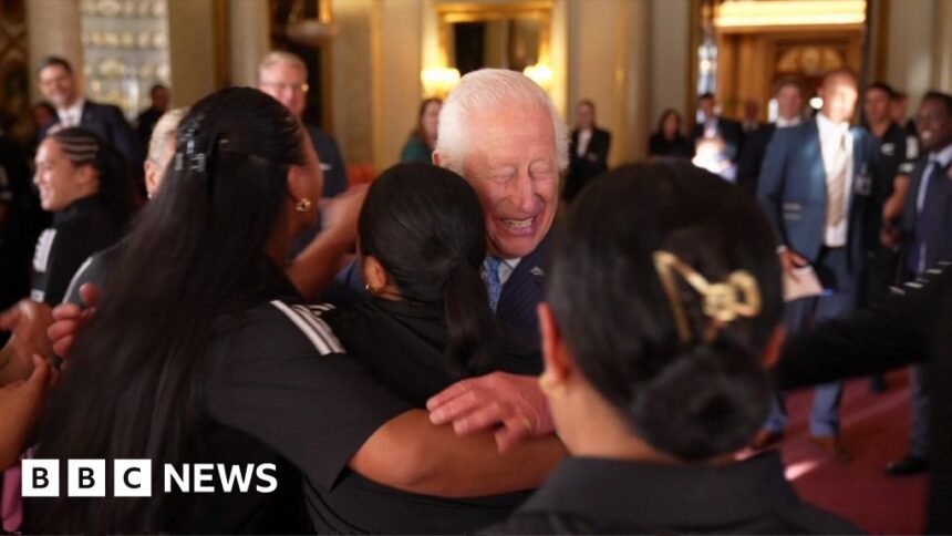 King Charles surprised by hug with rugby players from New Zealand