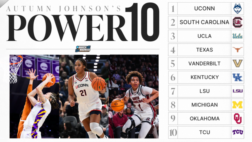 LSU defeated Texas with a statement win, sending the Longhorns down to No. 4 in the latest women’s basketball Power 10. The shakeup lifts South Carolina to No. 2 and UCLA to No. 3 as the race at the top heats up. See the full updated rankings.