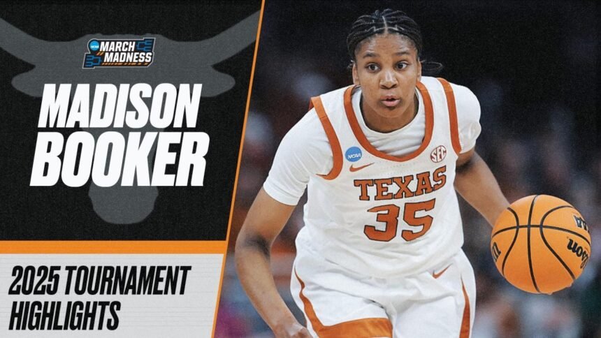 Madison Booker was a leading factor in Texas women’s basketball’s run to the Final Four in the 2025 NCAA tournament. Watch her 2025 March Madness highlights here.