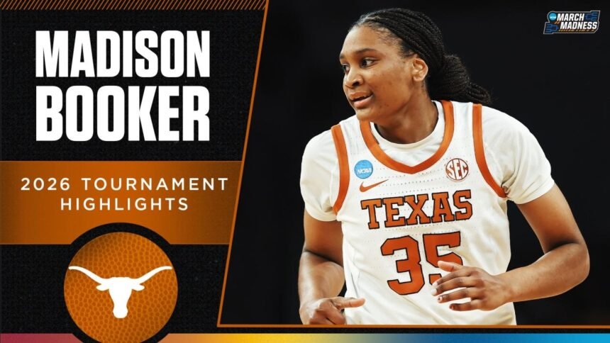 Watch top 2026 March Madness highlights from Madison Booker during Texas women’s basketball’s Final Four run. Booker scored a career-high 40 points in the second round and averaged 19 points across five NCAA tournament games.