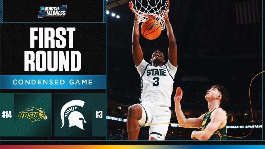 Watch the highlights from No. 3 Michigan State and No. 14 North Dakota State’s matchup in the first round of the 2026 men’s NCAA tournament.