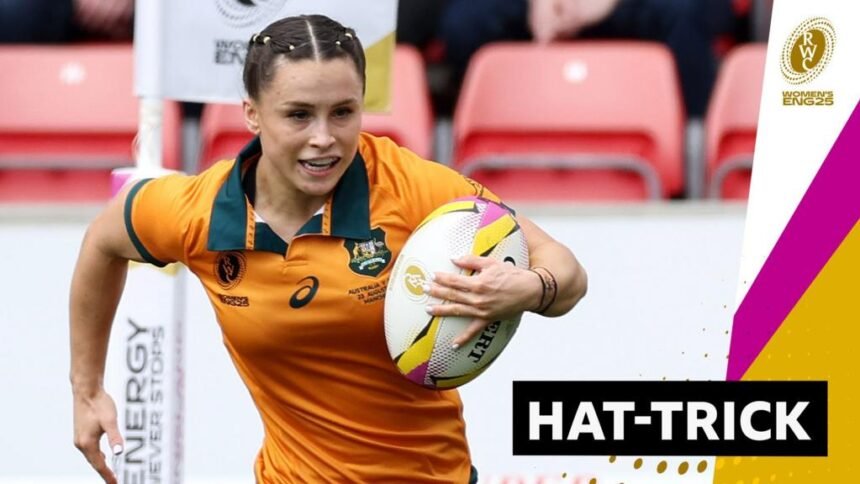 Australia’s Desiree Miller scores a first-half hat-trick in their opening game against Samoa at the Women’s Rugby World Cup.