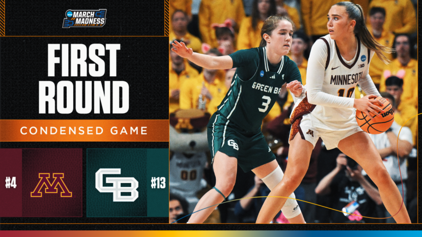 Watch the highlights from No. 4 Minnesota and No. 13 Green Bay’s matchup in the first round of the 2026 women’s NCAA tournament.