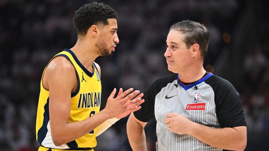 The first crucial non-call came when Pacers forward Pascal Siakam missed his second free-throw attempt with 48 seconds remaining. Indiana’s Aaron Nesmith crashed the glass from outside the 3-point line, gathering the miss for a rousing put-back dunk to cut the Cleveland lead to five points.