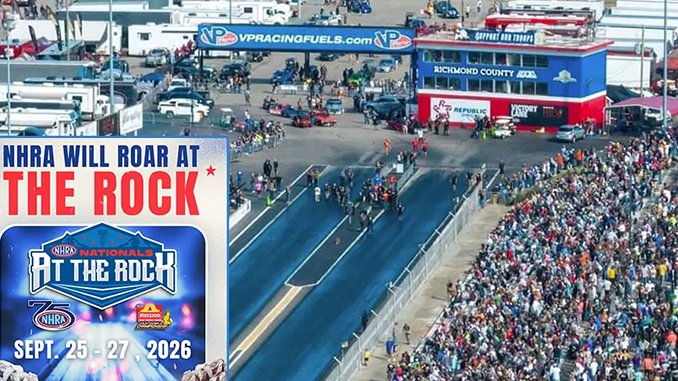 NHRA and Rockingham Dragway announced today the historic track will host a full NHRA national event for the first time in track history as part of NHRA’s 75th anniversary celebration in 2026.