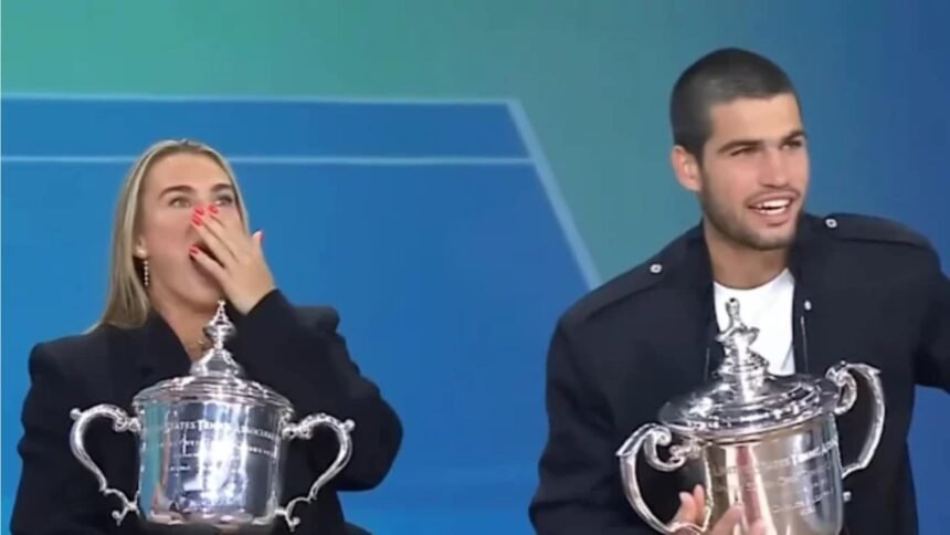 In a hilarious gaffe during live television, World No. 1 women’s tennis player and US Open women’s singles winner Aryna Sabalenka of Belarus mistakenly referred to the new World No. 1 men’s singles player, Spain’s Carlos Alcaraz, by his arch-rival’s name, Jannik Sinner. This left everyone present in stitches as Sabalenka called Alcaraz “Jannik”.