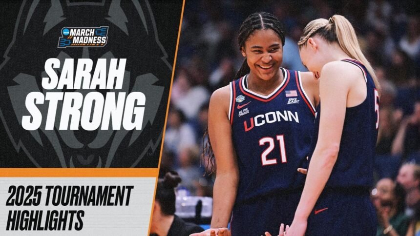 UConn star freshman Sarah Strong showed out in her first postseason action in the 2025 NCAA women’s basketball tournament, scoring 114 points accompanied by 12 blocks to help the Huskies win the national championship. Watch her 2025 March Madness highlights here.