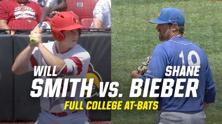 Watch the full at-bats from 2016 NCAA baseball super regionals between present-day MLB stars Shane Bieber (UCSB) and Will Smith (Louisville). The two All-Stars will face off again in the 2025 World Series between the Toronto Blue Jays and Los Angeles Dodgers.