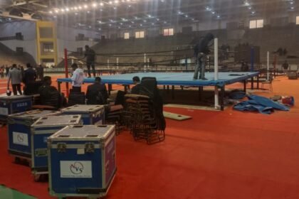 Boxing nationals delayed by more than four hours after delay in arrival of equipment and steel wire snapped at venue