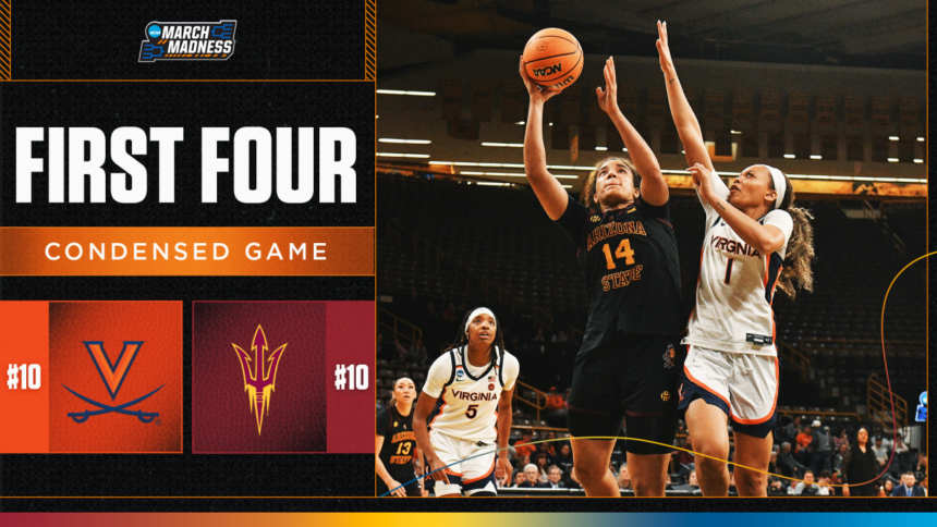 Watch the highlights from No. 10 Virginia and No. 10 Arizona State’s matchup in the First Four of the 2026 women’s NCAA tournament.