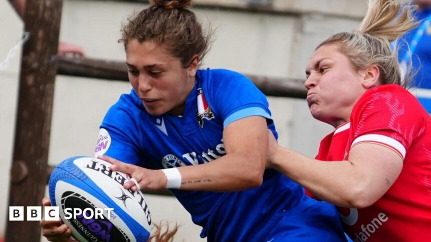 Italy responded in style with fly-half Veronica Madia showing her creativity with the boot, her cross-field kick just beating Alyssa D’Inca on her wing.